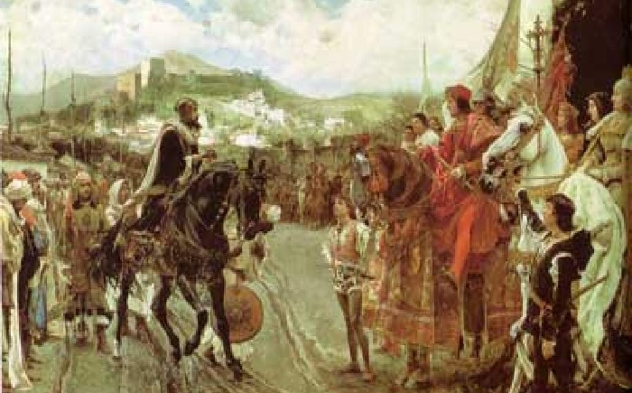 Την πρώτη του Ιανουαρίου του 1492, την ίδια χρονιά που ο Χριστόφορος Κολόμβος θα ανακάλυπτε για το ισπανικό στέμμα τον Νέο Κόσμο, στρατεύματα της Καστίλλης καταλαμβάνουν το παλάτι της Αλάμπρα, υπό προσυμφωνημένους όρους παράδοσης. Τη επόμενη μέρα, ο τελευταίος Άραβας Σουλτάνος της Γρανάδας, παραδίδει τα κλειδιά της πόλης στους καθολικούς μονάρχες, σε μια τελετή την οποία παρακολούθησε και ο Κολόμβος.