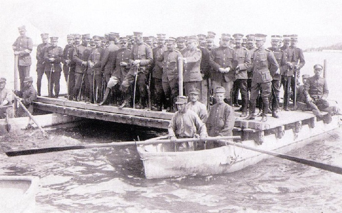 Άνοιξαν τις αποθήκες τους και πήραν οποιοδήποτε αντικείμενο θα μπορούσε να βοηθήσει στην ολοκλήρωση της αυτοσχέδιας κατασκευής. Βαρέλια, σκοινιά, τραπέζια, κάδρα και άλλα αντικείμενα, έγιναν οι πρώτες ύλες στα χέρια ενός καροποιού, του Ντελικάρη, που τα ένωσε και έφτιαξε αυτοσχέδια, αλλά αποτελεσματική γέφυρα.
