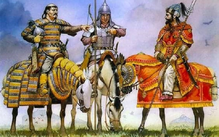 ( Στην εικονα, βαρυς Ιππεας Khitan-Liao δεχεται την επιθεση Karakhanid, που με τη σειρα του συγκρουεται με Σελτζουκο ιππεα).