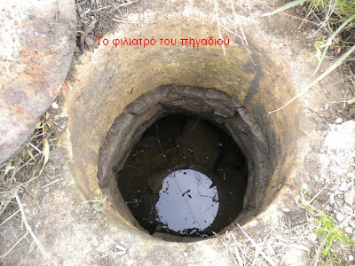 Απευθύνθηκα στον κ. Παναγιώτη Έγκαρχο, κάτοικο της περιοχής, ο οποίος δεν θυμόταν να υπήρχαν τρία πηγάδια, μού υπέδειξε όμως ένα πηγάδι με φιλιατρό στην ιδιοκτησία Ρουμαντζά. Βρήκα τον ιδιοκτήτη του πηγαδιού κ. Πέτρο Ρουμαντζά του Νικολάου, ο οποίος μού είπε ότι η μητέρα του Αλεξάνδρα, το γένος Κωνσταντίνου Αρβανιτάκη, θυμόταν τα τρία πηγάδια δεξιά και αριστερά από μικρή γέφυρα, στην συμβολή των δρόμων Αγίου Αθανασίου και του δρόμου προς Άγιο Νικόλαο, τα οποία όμως χώθηκαν κατά την κατασκευή των όμορων σπιτιών και του δρόμου. Το φιλιατρό, που είναι στο πηγάδι τους, σε απόσταση πενήντα (50) μέτρων από την υποδειχθείσα θέση των Τριών πηγαδιών, η μητέρα του και οι γείτονες το θυμούνται να υπήρχε πριν από το 1900 και μάλιστα μού είπαν ότι είχε καλό νερό και ότι από εκεί έρχονταν και έπαιρναν νερό οι Καλόγεροι του Μοναστηριού του Αγίου Διονυσίου.