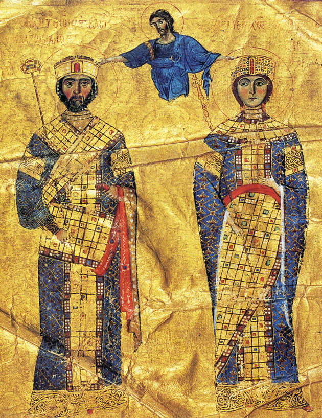 Η ανθρωπότητα και η φύση σώθηκαν από την αντίθεση και την αναμέτρηση, γιατί και οι δυό παλινορθώθηκαν στην ενότητα με τον Λόγο από τον οποίο από κοινού αντλούν την ίδια τους την ύπαρξη. Επειδή ο Παράδεισος έχει κατέβει στην Γη, η Γη και ο Παράδεισος είναι τώρα απαραίτητα επανενωμένα – μια θεολογία που αποτελεί την βάση ολόκληρης της βυζαντινής τέχνης, αλλά η οποία είναι περισσότερο χαρακτηριστικά ενσωματωμένη στην καλλιτεχνική μορφή της εικόνας. Εδώ, στην εικόνα, το γήινο εμποτίζεται με το ουράνιο. Η εικόνα, κυριολεκτικά κατανοημένη, δεν είναι μία αναπαράσταση, αλλά μία παράσταση –όχι μία Vorstellung, αλλά μία Darstellung– του αοράτου μέσω του ορατού, μια κοσμική επιφάνεια του αιωνίου, ένα ορατό παράθυρο προς το αόρατο. (Η λατινική θεολογία, αντιθέτως, κυριολεκτικά αρχίζει με τα Libri Carolini, στα οποία το δικαστήριο από θεολόγους του Καρλομάγνου –αναφερόμενο στην Ζ Οἰκουμενική Σύνοδο που είχε δικαιώσει την εικόνα από τις κατηγορίες των εικονομάχων–απέρριψε αυτόν τον θεοφαντικό χαρακτήρα της εικόνας, επιμένοντας στον δικαιοδοτικό χωρισμό της Γης από τον Παράδεισο, και αντικαθιστώντας την ασυναρτησία της αλληγορίας και της οδηγίας με την νοητική αμεσότητα της εικονικής εμπειρίας). Το φόντο, το βασικό στοιχείο κάθε εικόνας, είναι χρυσό: η εσωτερική ακτινοβολία των θείων ενεργειών. Το ότι το Βυζάντιο είναι η χρυσή πόλη, το ότι οι εικόνες του και οι τοιχογραφίες και τα ψηφιδωτά ακτινοβολούν με χρυσό, το ότι τα επίσημα αγγεία του και οι λειψανοθήκες και τα άμφια και οι πύλες είναι από χρυσό, το ότι οι σελίδες των θείων βιβλίων λαμπυρίζουν με χρυσό, το ότι η ίδια η σημαία του αναπαριστάνει τον δικέφαλο αετό με χρυσό φόντο απλά εξηγεί με σαφήνεια το βυζαντινό όραμα: την αποκατάσταση ολόκληρης της Δημιουργίας στις ίδιες τις θείες ρίζες της, οι οποίες μπορεί να φαίνονται ότι ακτινοβολούν και αναβλύζουν από βαθιά μέσα από την ίδια την Γη. Είναι η χρυσή λάμψη της πρωτόγονης αυγής της Δημιουργίας που λάμπει μέσα στην πόλη. Ρίχνοντας μία γρήγορη ματιά στην βυζαντινή σημαία που ακόμα κυματίζει πάνω στο Άγιον Όρος, στον Άθωνα, στη Χερσόνησο της Χαλκιδικής, στην Μακεδονία, ας μας αφήσει να επιστρέψουμε στην ίδια την αρχαία πόλη.