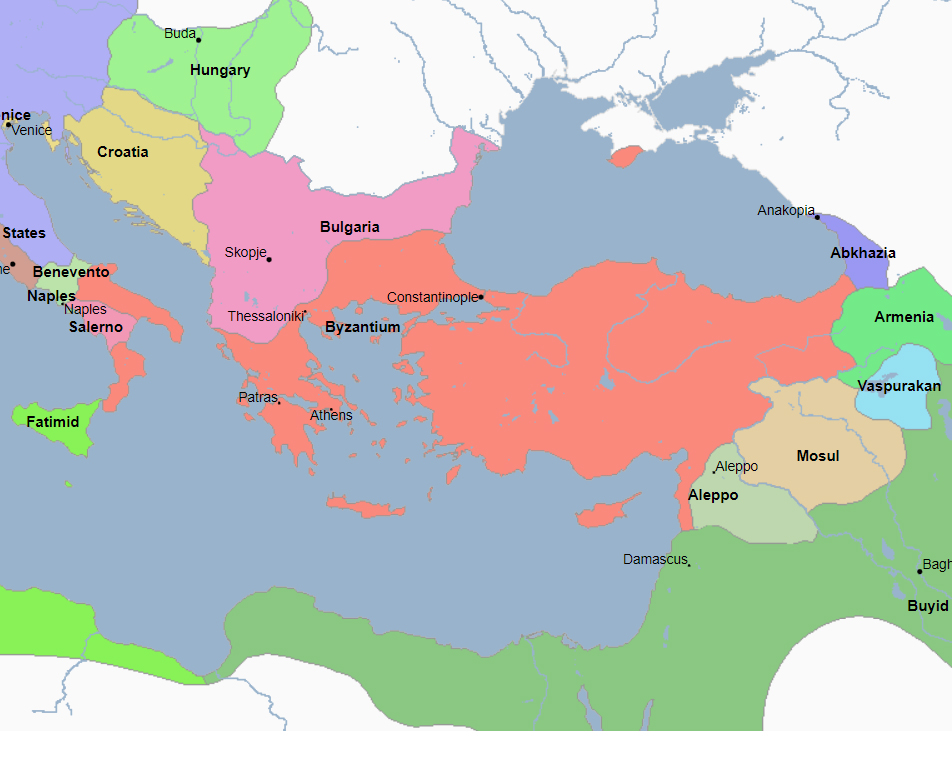 Απο την εποχή του Βασιλείου Α΄ και κυρίως απο τη βασιλεία του Ρωμανού του Λακαπηνού το Βυζάντιο άρχισε την αντεπίθεση κατά των Αράβων. Τα κατορθώματα του Ιωάννη Κουρκούα και κυρίως η άλωση της Μελιτηνής το 934 επέτρεψαν οχι μόνο την εδαφική επέκταση της αυτοκρατορίας στο Ανατολικό σύνορο αλλά και την αποκατάσταση σχετικής ασφάλειας για τους αγροτικούς πληθυσμούς της Μικράς Ασίας, οι οποίοι παλαιότερα υπέφεραν απο τις συνεχείς αραβικές εισβολές. Το 944 όμως εγκαταστάθηκε στη Βέροια της Συρίας ο Αραβας Χαμδανίδης εμίρης Saif-ad-Dawla, ο μεγάλος πολεμιστής του Ισλάμ. Το ισχυρό κράτος που ίδρυσε θα υποχρεώσει τους Βυζαντινούς να ακολουθήσουν αμυντική πολιτική στο Ανατολικό σύνορο, πρίν εξαπολύσουν τη νέα επίθεση, που θα τους οδηγήσει στη Συρία και στην Παλαιστίνη.