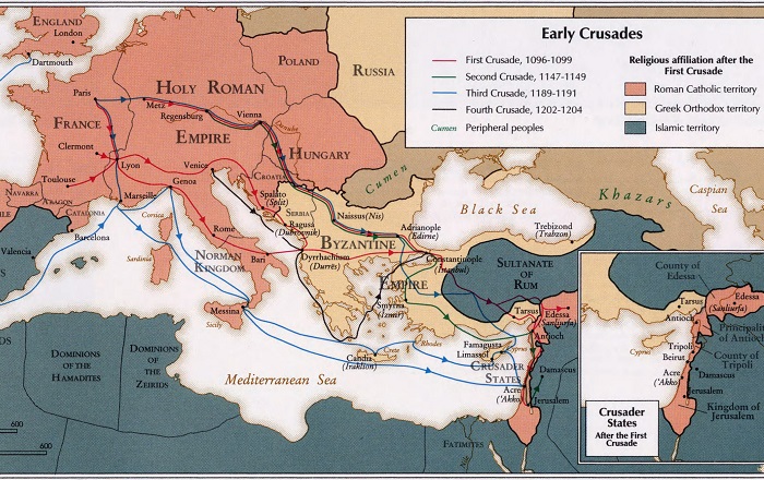 [6] Whalen, The Medieval Papacy, σελ. 103-105, Runciman, A History of the Crusades, τ.1, σελ. 84-92, Tyerman, C., Fighting for Christendom: Holy War and the Crusades, Oxford University Press, 2004, σελ. 95-124, Γιανναράς, Χ., Η Ευρώπη γεννήθηκε από το Σχίσμα, Ίκαρος, Αθήνα 2015, σελ. 114-116.