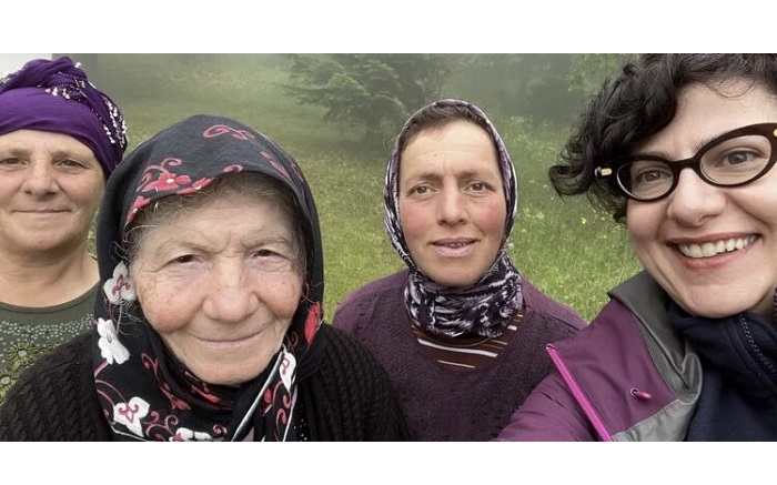 Η κυρία Σιταρίδου, δεξιά, με μία αιωνόβια ομιλήτρια της ρωμέικης διαλέκτου στην περιοχή της Τραπεζούντος. (Guardian)
