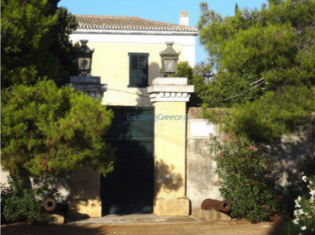 Εικόνα 3: Η αρχοντική οικία της οικογένειας Μπούκουρη στις Σπέτσες με χαρακτηριστικά βενετσιάνικα φανάρια στην είσοδο.