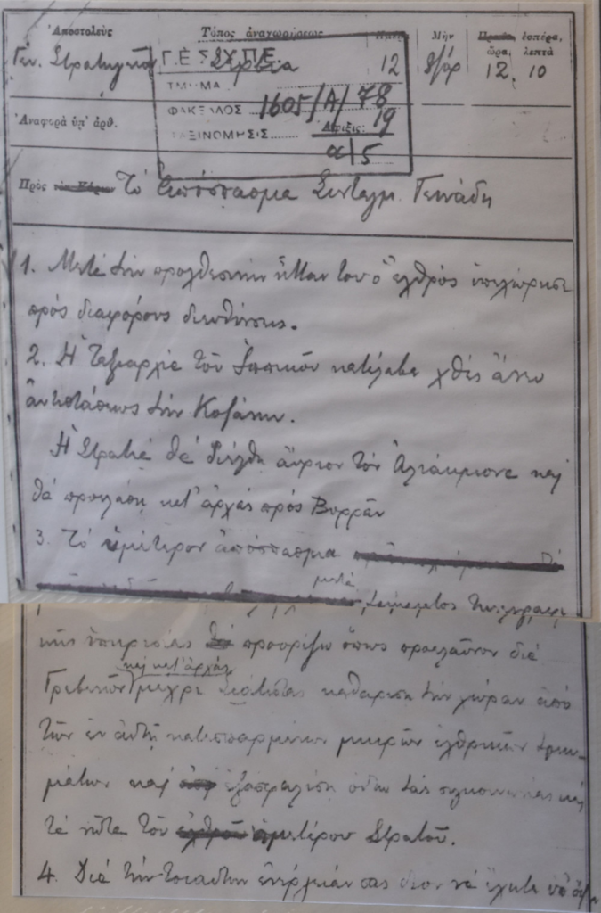 Στην εξιστόρηση της ΔΙΣ/ΓΕΣ [ΒΠ2, τ. Α΄, εδ. 62,64, σελ.64,67 & ΒΠ3, εδ. 44-45, σελ. 34-36] συναντούμε καταγεγραμμένη την εξής αλληλογραφία (οι επισημάνσεις επιμάχων σημείων είναι δικές μου).