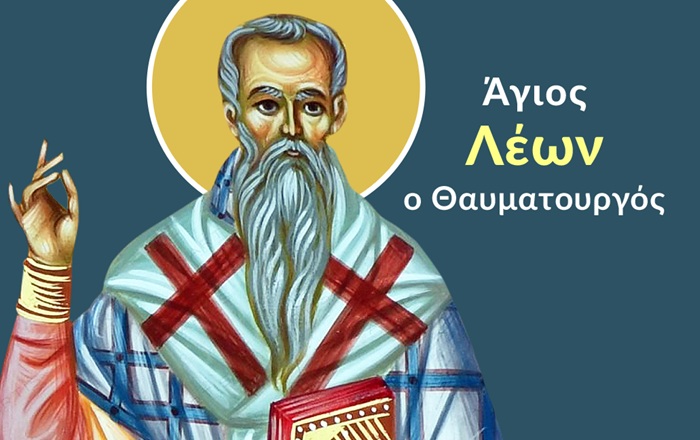 Ἱερέων ἀκρότης, εὐσεβείας διδάσκαλος καὶ θαυματουργὸς ἀνεδείχθης, ἱεράρχα πανόλβιε· ἠθῶν γὰρ οὐρανίων τῷ φωτί, τοῦ Πνεύματος πλουτήσας τὴν ἰσχύν, θεραπεύεις τοὺς νοσοῦντας καὶ τὰς ψυχάς, Λέων, τῶν προσιόντων σοι. Δόξα τῷ σὲ δοξάσαντι, δόξα, τῷ σὲ στεφανώσαντι, δόξα τῷ ἐνεργοῦντι διὰ σοῦ πᾶσιν ἰάματα.