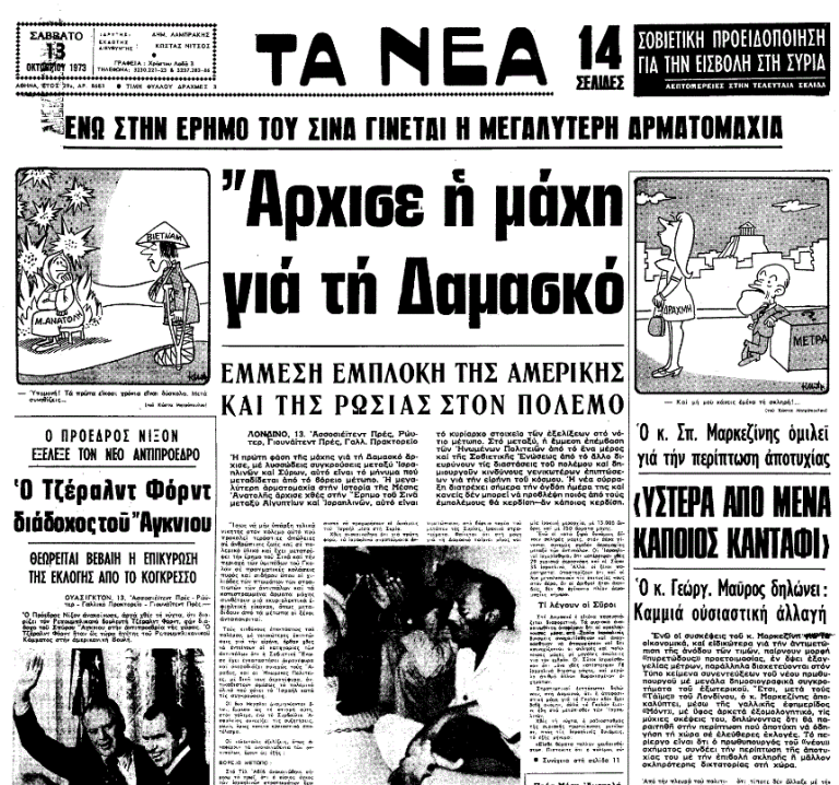 «ΤΑ ΝΕΑ», 13.10.1973, Ιστορικό Αρχείο «ΤΟ ΒΗΜΑ» & «ΤΑ ΝΕΑ»