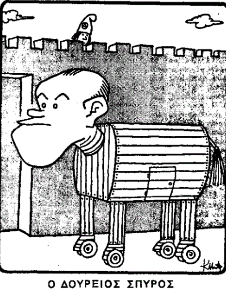 Εάν αποτύχω, η εξουσία θα πέση εις τα χέρια ενός Έλληνος Καδδάφι (σ.σ. Καντάφι), ο οποίος δεν θα διαθέτη το πετρέλαιον διά να βελτιώση την τύχην των συμπατριωτών του. Διατί τα κόμματα δεν κατανοούν πού ευρίσκεται το πραγματικόν των συμφέρον;»
