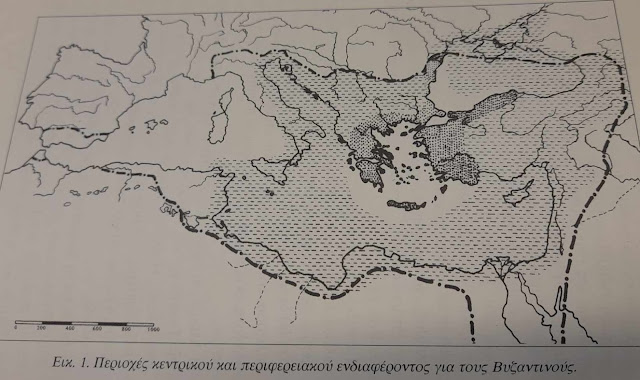 [4] Αν χρησιμοποιείτο η ίδια μέγεθος προς αναζήτηση του πυρήνα του με εκείνη των περισσότερο “παραδοσιακών” αυτοκρατοριών, τότε θα έπρεπε να επιλεγεί το Λάτιο, ή η… Μακεδονία – αν αναγνωριστεί στο Βυζάντιο η ιδιότητα ενός νεο-ελληνιστικού βασιλείου, στο γεωπολιτισμικό περιβάλλον της αυτοκρατορίας του Μεγάλου Αλεξάνδρου!