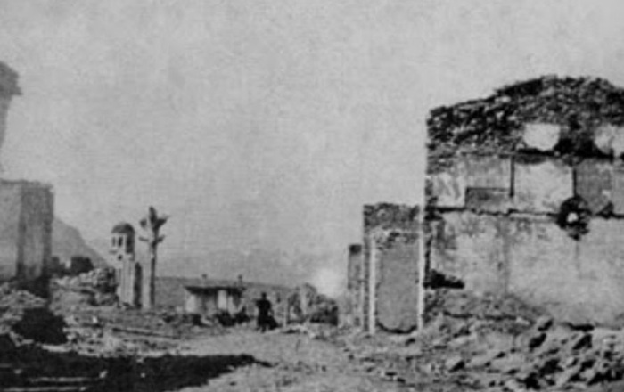 Και τώρα οι άνθρωποι ζουν σε «πανάθλιες καλύβες όπου ετρύπωσαν σαν αρουραίοι, τα σχολεία στεγάζονται μέσα σε παραπήγματα και του ωραίου Διοικητηρίου παραμένουν μόνον οι καψαλισμένοι τοίχοι όρθιοι για να θυμίζουν σε κάθε διαβάτη την Νερώνειον τραγωδίαν που έγραψε το Ιταλικό εκείνο Σύνταγμα.»…