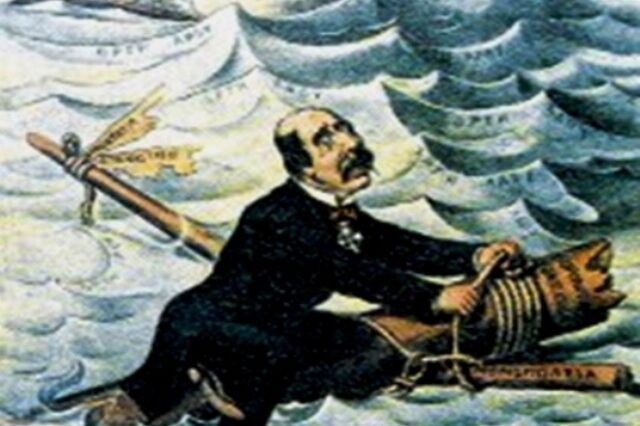 Ο Τρικούπης και ο Δηλιγιάννης, που κυριαρχούσαν, όπως είπα, στην πολιτική σκηνή αυτά τα χρόνια, ακολουθούσαν δύο διαφορετικές πολιτικές. Κεντρικός άξονας του πρώτου ήταν να επενδύει ξοδεύοντας ποσά σε υποδομές, που δεν είχαν όμως άμεση απόδοση, όπως πχ σε σιδηροδρόμους, προσπαθώντας παράλληλα να μειώσει τις στρατιωτικές δαπάνες της χώρας. Αντίθετα, ο Δηλιγιάννης επένδυε στο λαϊκισμό και στη δημαγωγία με παράλληλη αύξηση των δαπανών για εξοπλιστικά προγράμματα, προκειμένου η χώρα να είναι ετοιμοπόλεμη, φέρνοντας, έτσι, σε δύσκολη θέση τον Τρικούπη, που για να τον αντιμετωπίζει νέρωνε κι αυτός το κρασί του νοθεύοντας την πολιτική του.