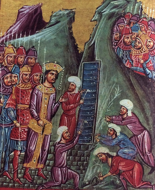 Πέρυσι τέτοια εποχή, η στήλη αυτή είχε ασχοληθεί με το βιβλίο του Δημήτρη Κουγιουμτζόγλου, Ο Βυζαντινός Μέγας Αλέξανδρος. Πολλές από τις παραπάνω σκέψεις αφορμώνται από εκεί. Το βιβλίο βέβαια ασχολείται με πολύ περισσότερα. Προσφέρει μία πλήρη παρουσίαση της θέσης του Αλεξάνδρου στη βυζαντινή λογοτεχνία και κυρίως στη βυζαντινή τέχνη. Θα ήθελα να σταθώ μόνο στην κορυφαία καλλιτεχνική αποτύπωση, του Μεγάλου Αλεξάνδρου ως θείου, ηλιακού βασιλέα, να ανέρχεται στον ουρανό πάνω σε ένα άρμα που σέρνουν γρύπες – η οποία κοσμεί και το εξώφυλλο του πολυσέλιδου τόμου.
