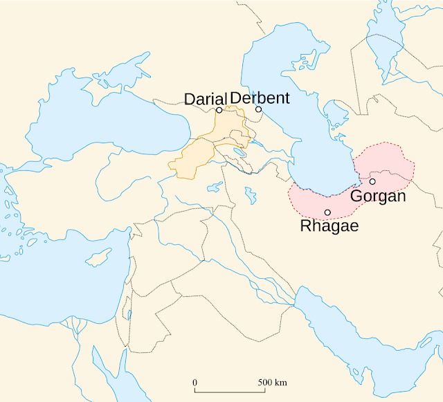 Η βόρεια απειλή ήταν τόσο μεγάλη, που οι Βυζαντινοί και οι Πέρσες είχαν συμφωνία να συντηρούν από κοινού αμυντικά έργα στα περάσματα του Καυκάσου. Διάφορα περάσματα στον Καύκασο και στην Κασπία ταυτίστηκαν με τις περίφημες Πύλες του Μεγάλου Αλεξάνδρου, το τελευταίο ανάχωμα του πολιτισμού μπροστά στην βαρβαρότητα. Ο πραγματικός Αλέξανδρος βέβαια πέρασε από τις Κασπίες Πύλες, όπως μας λέει ο Αρριανός, δεν έκτισε όμως κάποιο τείχος. Πρώτη αναφορά ενός τέτοιου έργου συναντάται στον Εβραίο ιστορικό Φλάβιο Ιώσηπο.